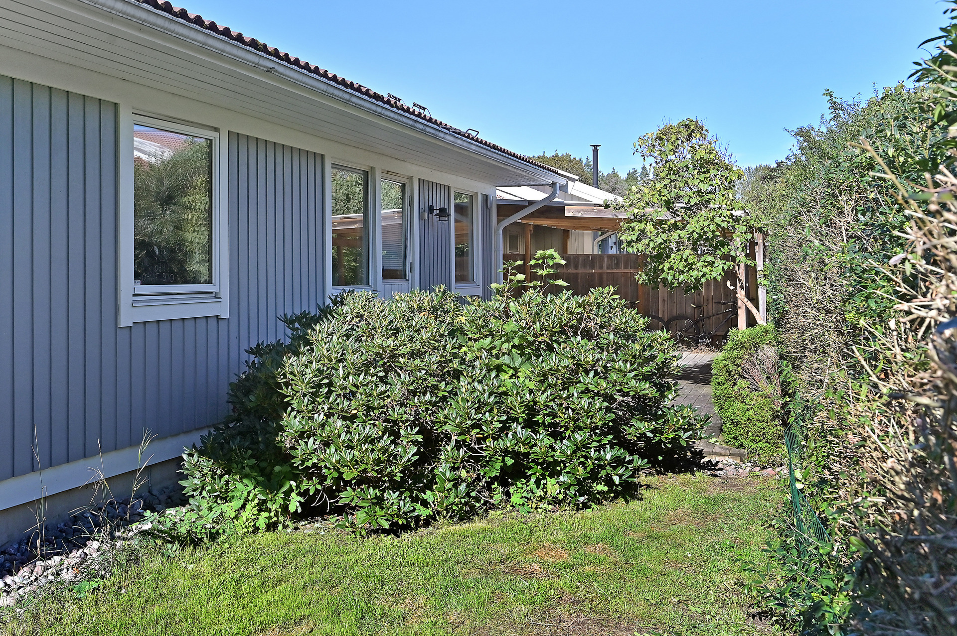 Byggt pool och stor altan, (2022-2023) - Byggnadssätt: Fönster: 3-glasfönster. Skorstenstyp: Skorsten av plåt. Utvändiga plåtarbeten: Plastbelagd plåt. Avlopp: Kommunalt avlopp. Vatten: Kommunalt vatten. Taktyp/takbeklädnad: Betongpannor. Grund: Krypgrund. Stomme: Trä. Fasadtyp: Stående träpanel. Bjälklag: Trä.