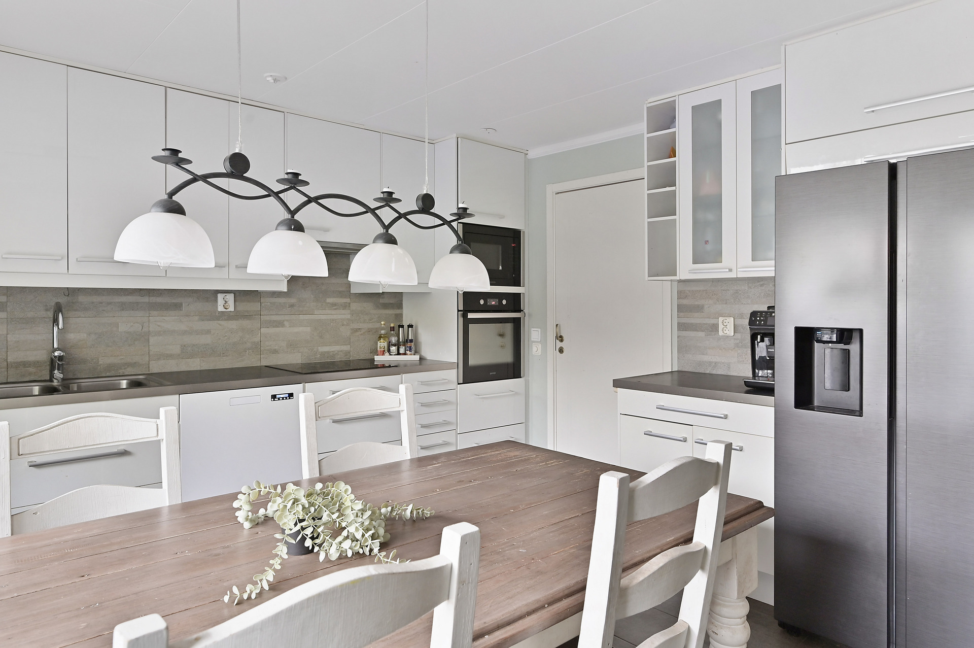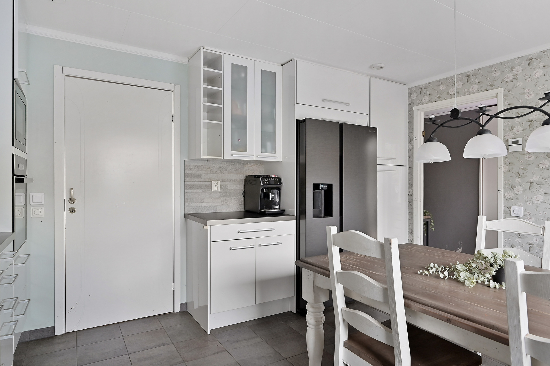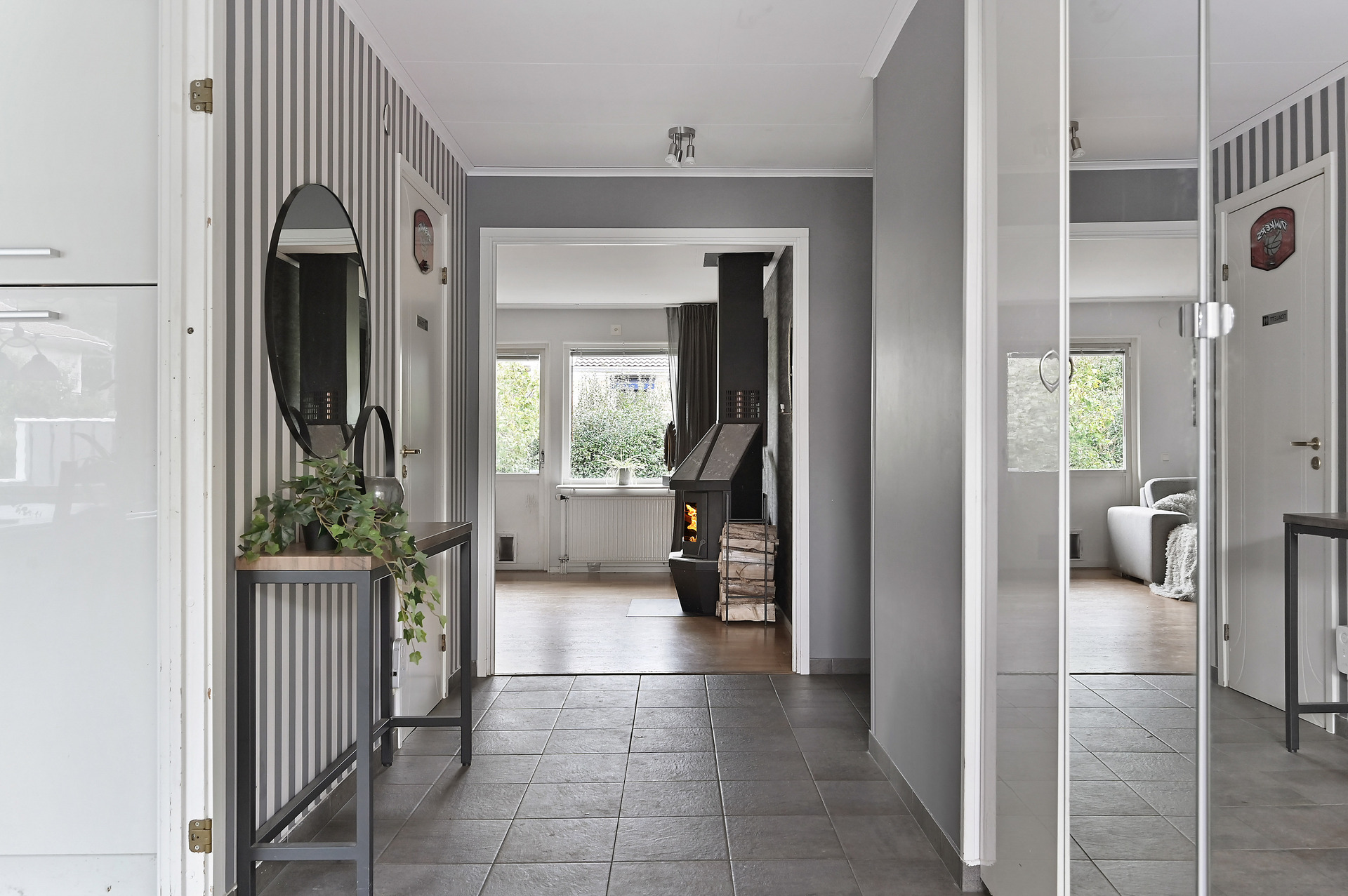 Entré från altan in till en ljus välkomnade hall med klinkergolv (golvvärme) och plats för ytterkläder och skor i en garderobsmöbel med spegeldörrar. SEPARAT WC: Renoverad gäst wc med vitt kakel och mörkt klinkergolv med golvvärme. Wc och tvättställ i kommod med belyst spegelskåp ovan. KÖK: Direkt till vänster om hallen ligger köket som renoverats 2012 med klinkergolv (golvvärme), vita blanka köksluckor och kakel ovan bänkskivan som matchar golvet. Rymlig matplatser för 6-8 personer. Spishäll, fläkt, inbyggnadsugn och mikro, kyl och frys (2024) samt diskmaskin (2023). TVÄTT: Innanför köket ligger tvättstugan med praktisk groventré från förrådet. Tvättmaskin (2024), torktumlare (2024) och bergvärmepump IVT med ackumulatortank (2012). BADRUM: Renoverat 2012 med kakel och klinkergolv med golvvärme. Badkar, separat duschhörna, wc, tvättställ i kommod med spegelskåp ovan samt handdukstork. SOVRUM 1, 2 & 3 Till höger om hallen ligger tre sovrum i olika storlekar. Det större sovrummet har en egen klädkammare. VARDAGSRUM: Rakt fram ligger ett rymligt vardagsrum med utgång till altanen på baksidan och en mysig braskamin från Handöl. SOVRUM 4 Innanför vardagsrummet ligger ytterligare ett sovrum med sovloft som delats av från det ursprungliga garaget.