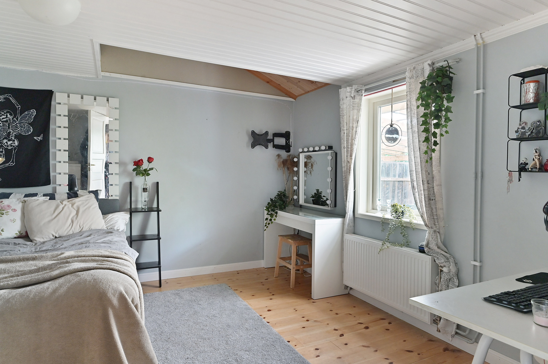 Garaget är ombyggt till verkstad/förråd i ena ändan och sovrum med loft i den andra. Gott om förvaringsplats på vinden.