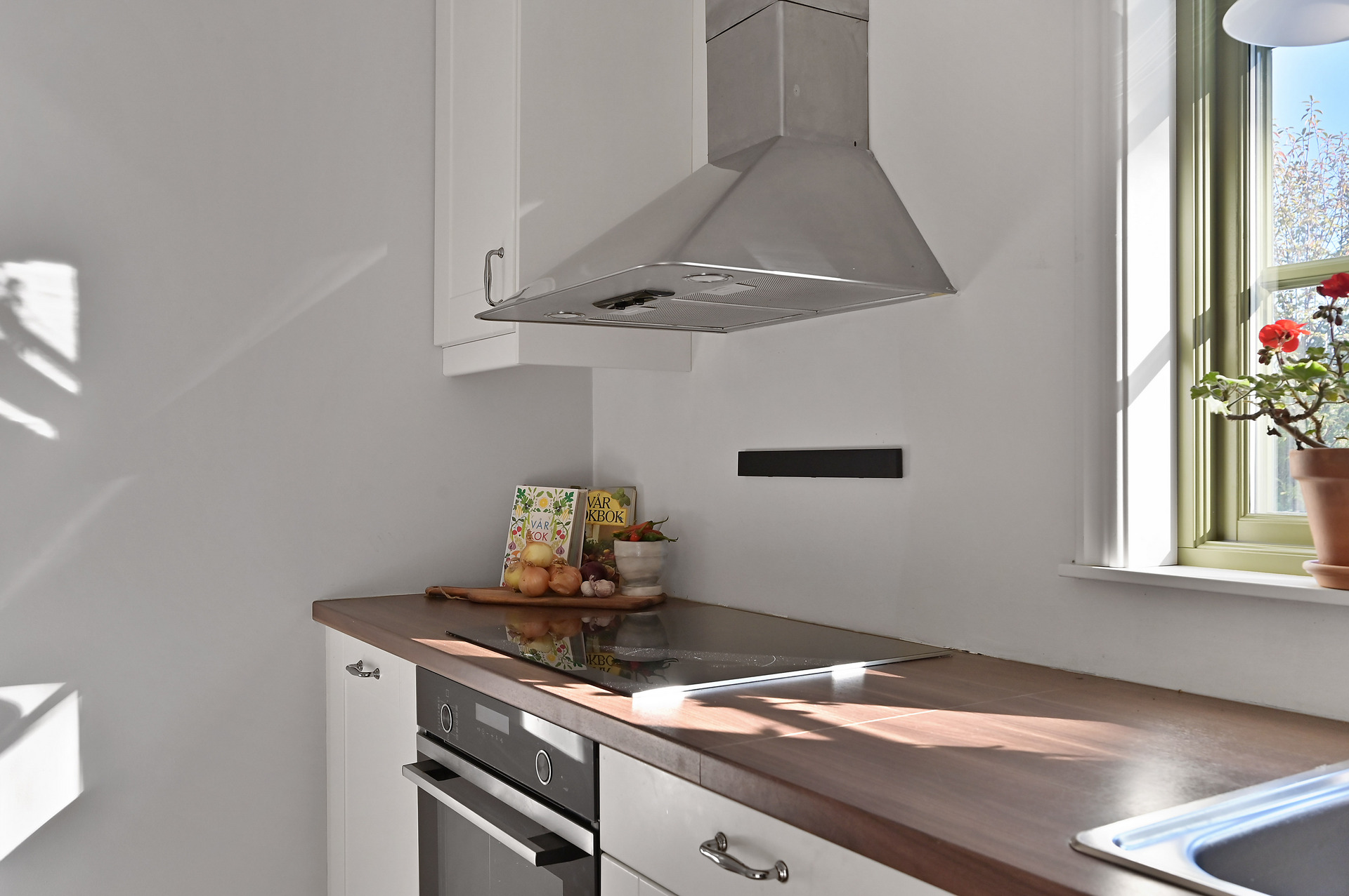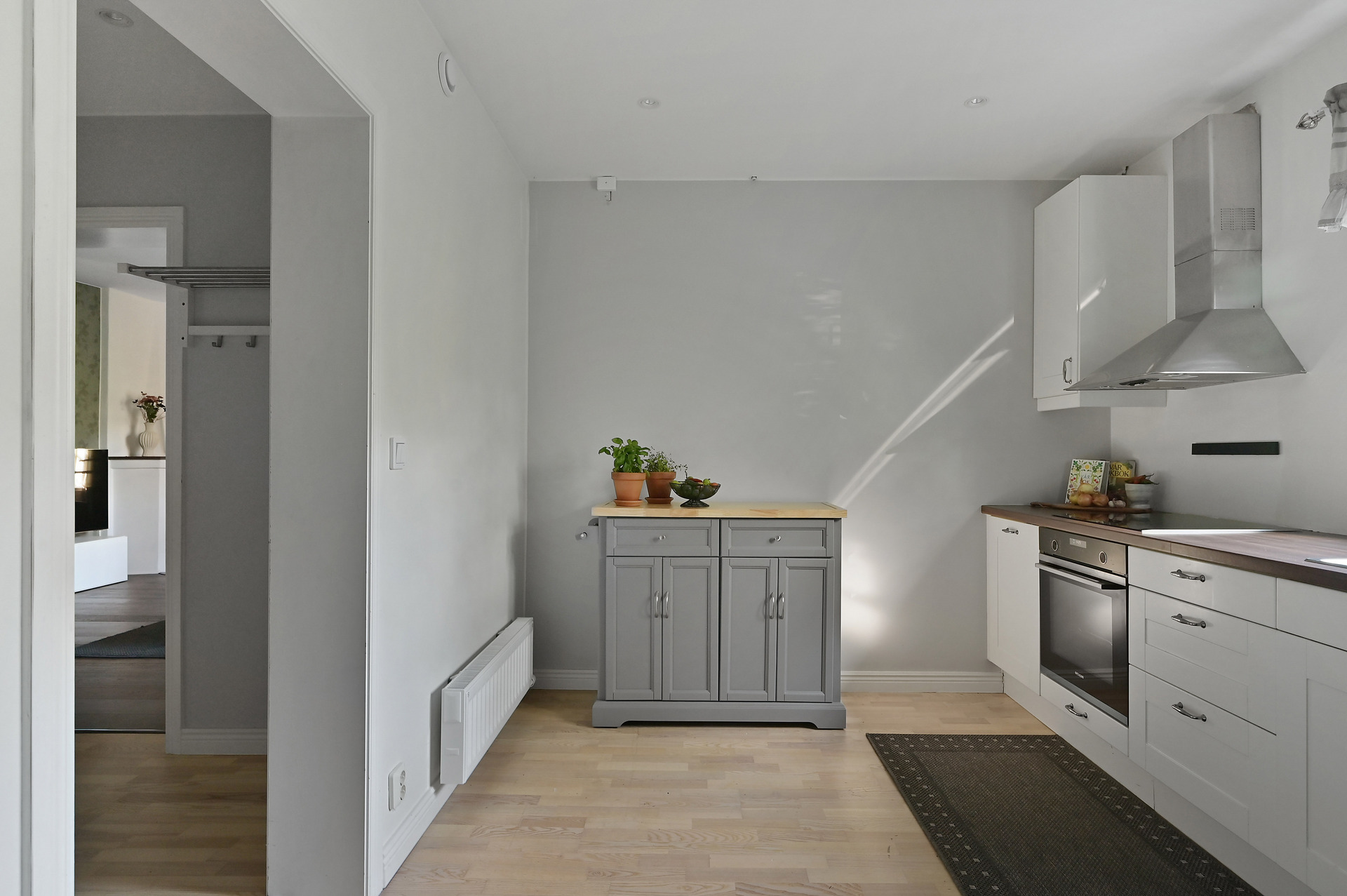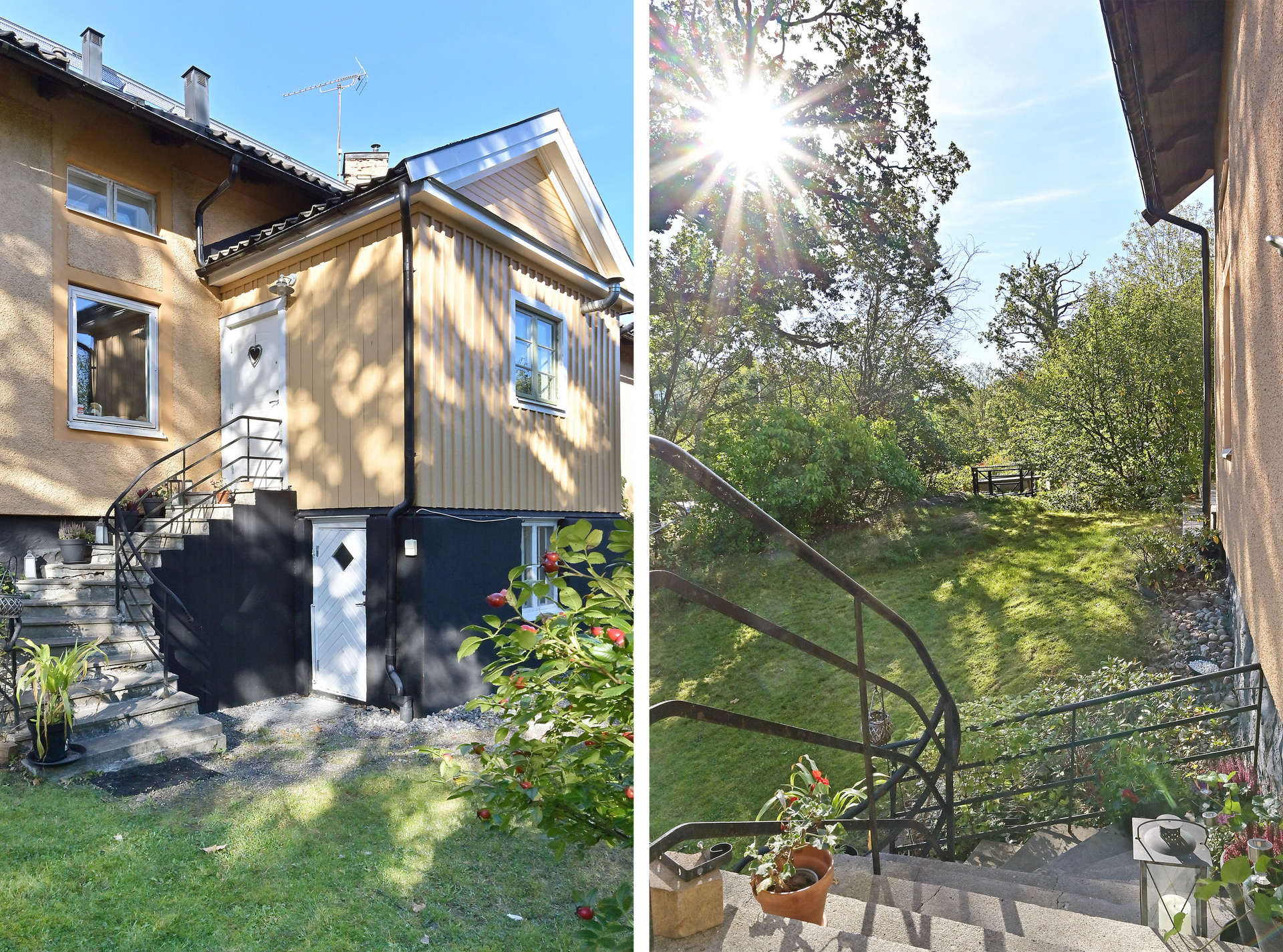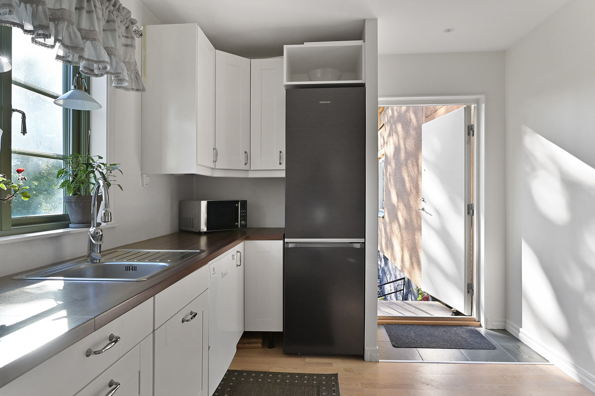Några trappsteg upp har man en egen entré som välkomnar in i det ljusa fina köket med spröjsat fönster ovanför diskhon. Köket har vit köksinredning med vitt kakel och en träfärgad bänkskiva i laminat och spotlights i taket. Här finns spishäll med inbyggd ugn under och spisfläkt ovanför, kyl/frys och diskmaskin. Innanför köket finns en innerhall med spotlights i taket, garderob bakom skjutbara dörrar och plast för ytterkläder och skor. Både kök och innerhall har ljusa fina klickgolv i trä och väggarna är ljust målade. Här finns även det fint kaklade badrummet som har en ljus färgsättning, kommod med spegel ovanför, duschhörna bakom vikbara dörrar i glas och wc. I taket finns spotlights och på golvet är det el-golvvärme för härlig komfort. Vidare från innerhallen når man vardagsrum samt sovrum båda rummen har en tilltagen takhöjd och vackra spröjsade fönster. Vardagsrummet är rymligt hat har ett vackert murat fundament med möjlighet att installera en eldstad. Väggarna i rummet är målade i ljus kulör och på ena väggen finns en mönstrad fondtapet. På golvet har man ett stilrent enstavigt oak Antique golv tillsammans med allmogelister som slingar sig vidare in i det luftiga sovrummet. I sovrummet möts man av en en vacker kakelugn som med fördel används både för värme men även för 100% mysfaktor. I sovrummet finns plats för en stor dubbelsäng och annan förvaring om så önskas. Längst ena väggen finns garderober för optimal förvaring. Även detta rum har ljust målade väggar. Utförda renoveringar av tidigare ägare: 2020-2021 Renoverat badrum med el golvvärme Utförda renoveringar av nuvarande ägare 2023-2025 Klinker ingång, lister alla rum. Smyg ytterdörr. Gips vid kylskåp plus målning, hylla ovanför kyl, socklar mellan rum, låda vid ventilation hall Målning tak och väggar alla rum Nya golv vardagsrum och sovrum (nya golv finns till kök och hall och kan köpas till från säljaren) Nya golvlister Spackel målning efter nya fönster Tak hall efter ventilationen Sänkning tak kök och hall Spottar kök och hall Eldragning kök hall Tätning skorsten sovrum Glaslucka Kakelugn Lagning kakelugn Skorstenstätarna Värmdö Besiktning sotare plus provtryckning vardagsrum Flyttat ny vägg kök vid entré Element alla rum 2023-2024 Ny kyl- frys Samsung. Ny spishäll Siemens Ny ugn Siemens Tapet vardagsrummet Garderober sovrum Ikea Innerdörr glas Sweedoor 2025 Uteplats, pallkragar, jord, växter