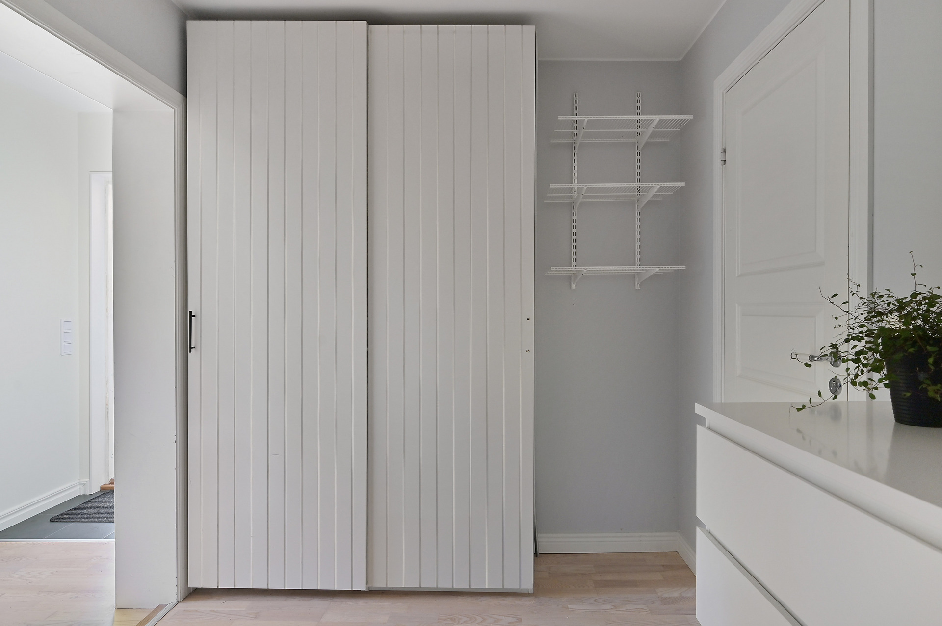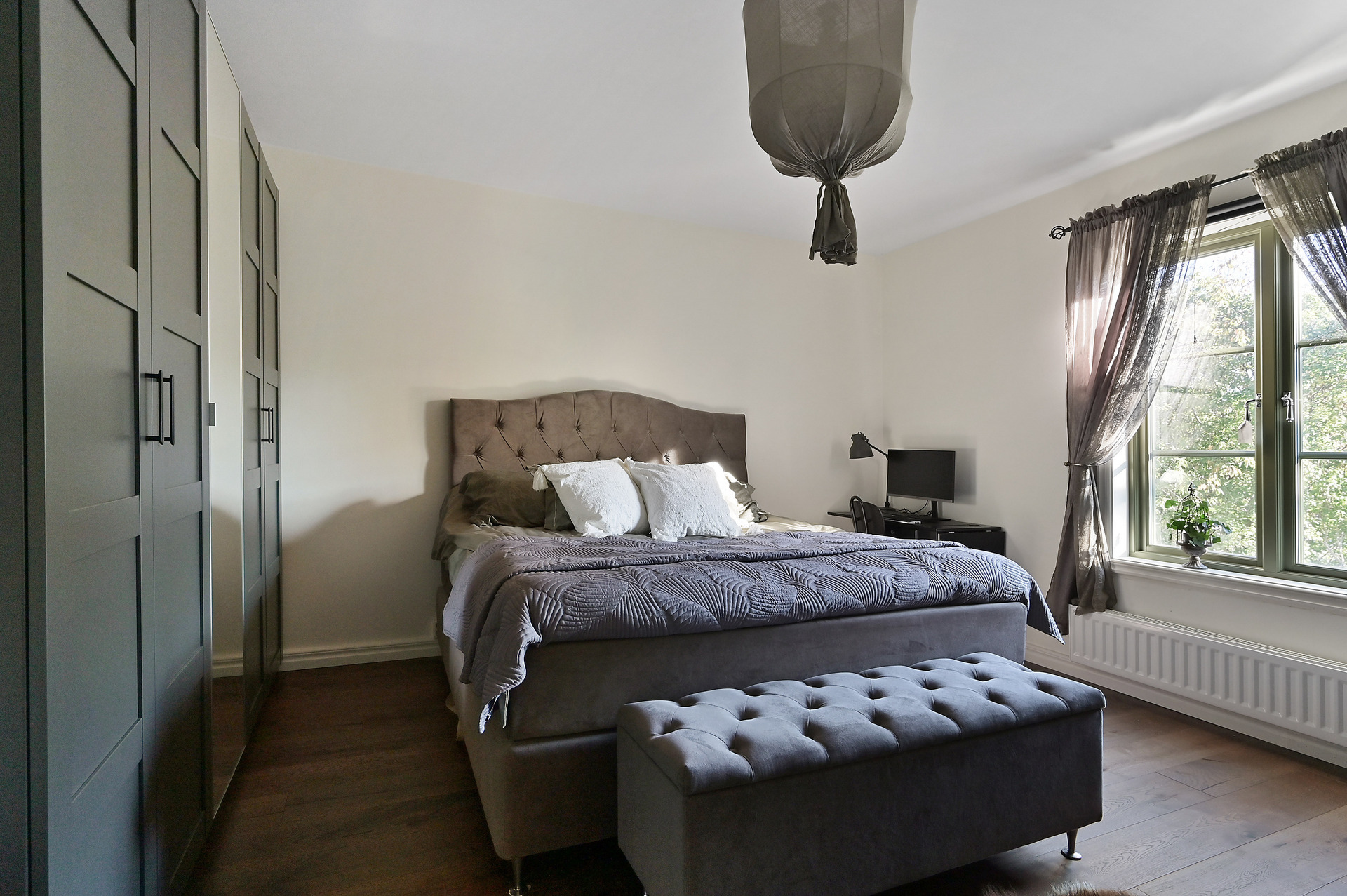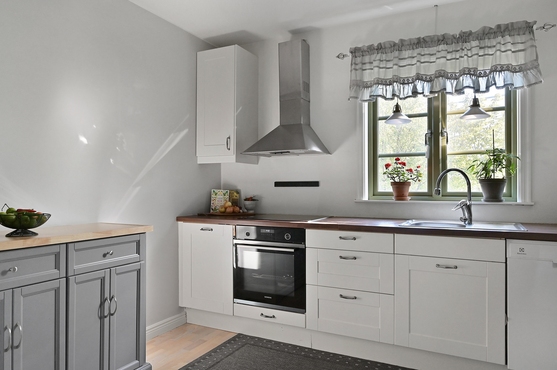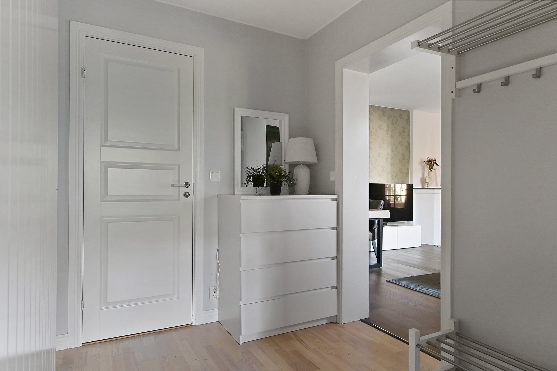 Några trappsteg upp har man en egen entré som välkomnar in i det ljusa fina köket med spröjsat fönster ovanför diskhon. Köket har vit köksinredning med vitt kakel och en träfärgad bänkskiva i laminat och spotlights i taket. Här finns spishäll med inbyggd ugn under och spisfläkt ovanför, kyl/frys och diskmaskin. Innanför köket finns en innerhall med spotlights i taket, garderob bakom skjutbara dörrar och plast för ytterkläder och skor. Både kök och innerhall har ljusa fina klickgolv i trä och väggarna är ljust målade. Här finns även det fint kaklade badrummet som har en ljus färgsättning, kommod med spegel ovanför, duschhörna bakom vikbara dörrar i glas och wc. I taket finns spotlights och på golvet är det el-golvvärme för härlig komfort. Vidare från innerhallen når man vardagsrum samt sovrum båda rummen har en tilltagen takhöjd och vackra spröjsade fönster. Vardagsrummet är rymligt hat har ett vackert murat fundament med möjlighet att installera en eldstad. Väggarna i rummet är målade i ljus kulör och på ena väggen finns en mönstrad fondtapet. På golvet har man ett stilrent enstavigt oak Antique golv tillsammans med allmogelister som slingar sig vidare in i det luftiga sovrummet. I sovrummet möts man av en en vacker kakelugn som med fördel används både för värme men även för 100% mysfaktor. I sovrummet finns plats för en stor dubbelsäng och annan förvaring om så önskas. Längst ena väggen finns garderober för optimal förvaring. Även detta rum har ljust målade väggar. Utförda renoveringar av tidigare ägare: 2020-2021 Renoverat badrum med el golvvärme Utförda renoveringar av nuvarande ägare 2023-2025 Klinker ingång, lister alla rum. Smyg ytterdörr. Gips vid kylskåp plus målning, hylla ovanför kyl, socklar mellan rum, låda vid ventilation hall Målning tak och väggar alla rum Nya golv vardagsrum och sovrum (nya golv finns till kök och hall och kan köpas till från säljaren) Nya golvlister Spackel målning efter nya fönster Tak hall efter ventilationen Sänkning tak kök och hall Spottar kök och hall Eldragning kök hall Tätning skorsten sovrum Glaslucka Kakelugn Lagning kakelugn Skorstenstätarna Värmdö Besiktning sotare plus provtryckning vardagsrum Flyttat ny vägg kök vid entré Element alla rum 2023-2024 Ny kyl- frys Samsung. Ny spishäll Siemens Ny ugn Siemens Tapet vardagsrummet Garderober sovrum Ikea Innerdörr glas Sweedoor 2025 Uteplats, pallkragar, jord, växter