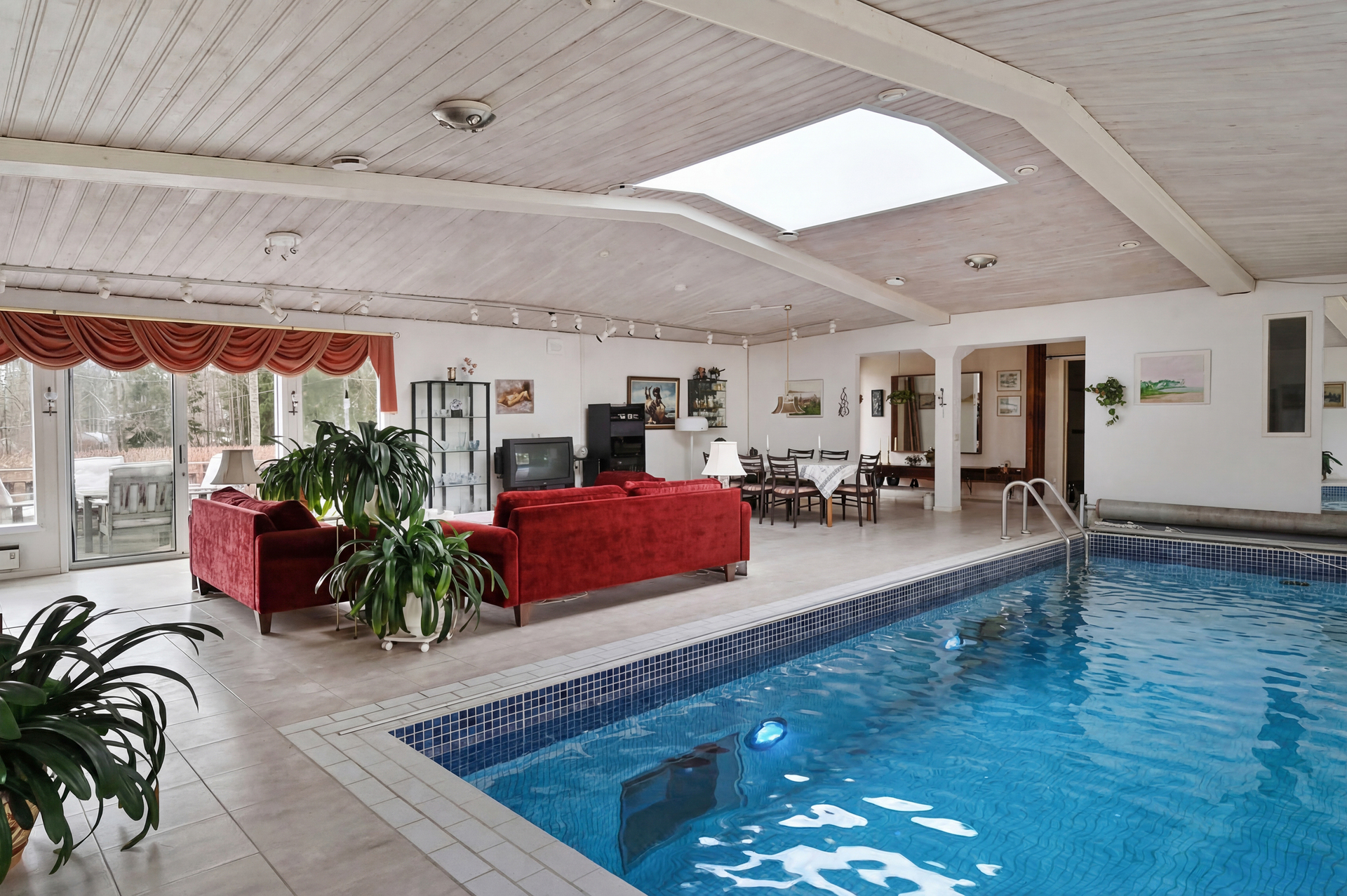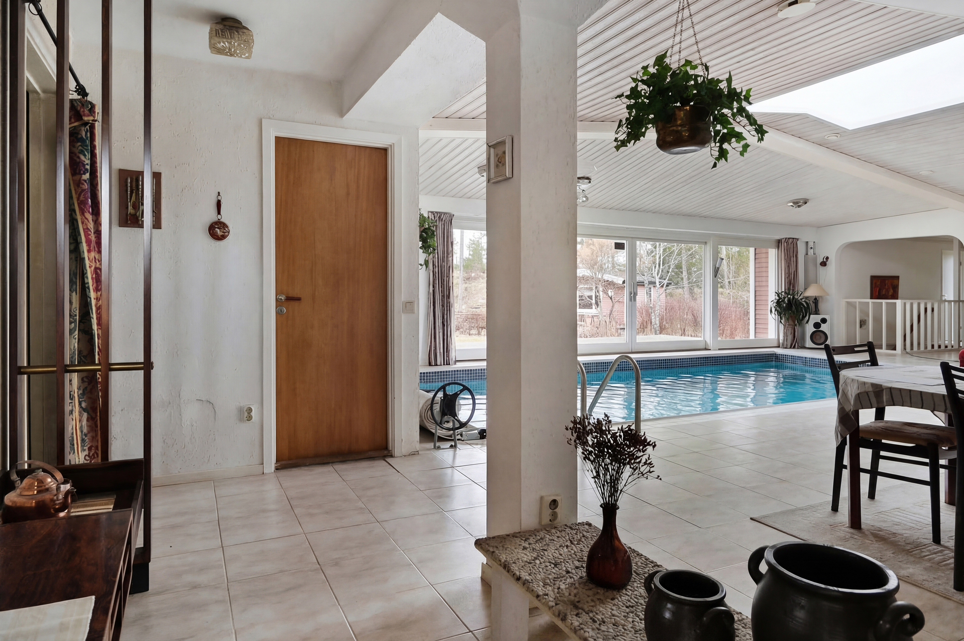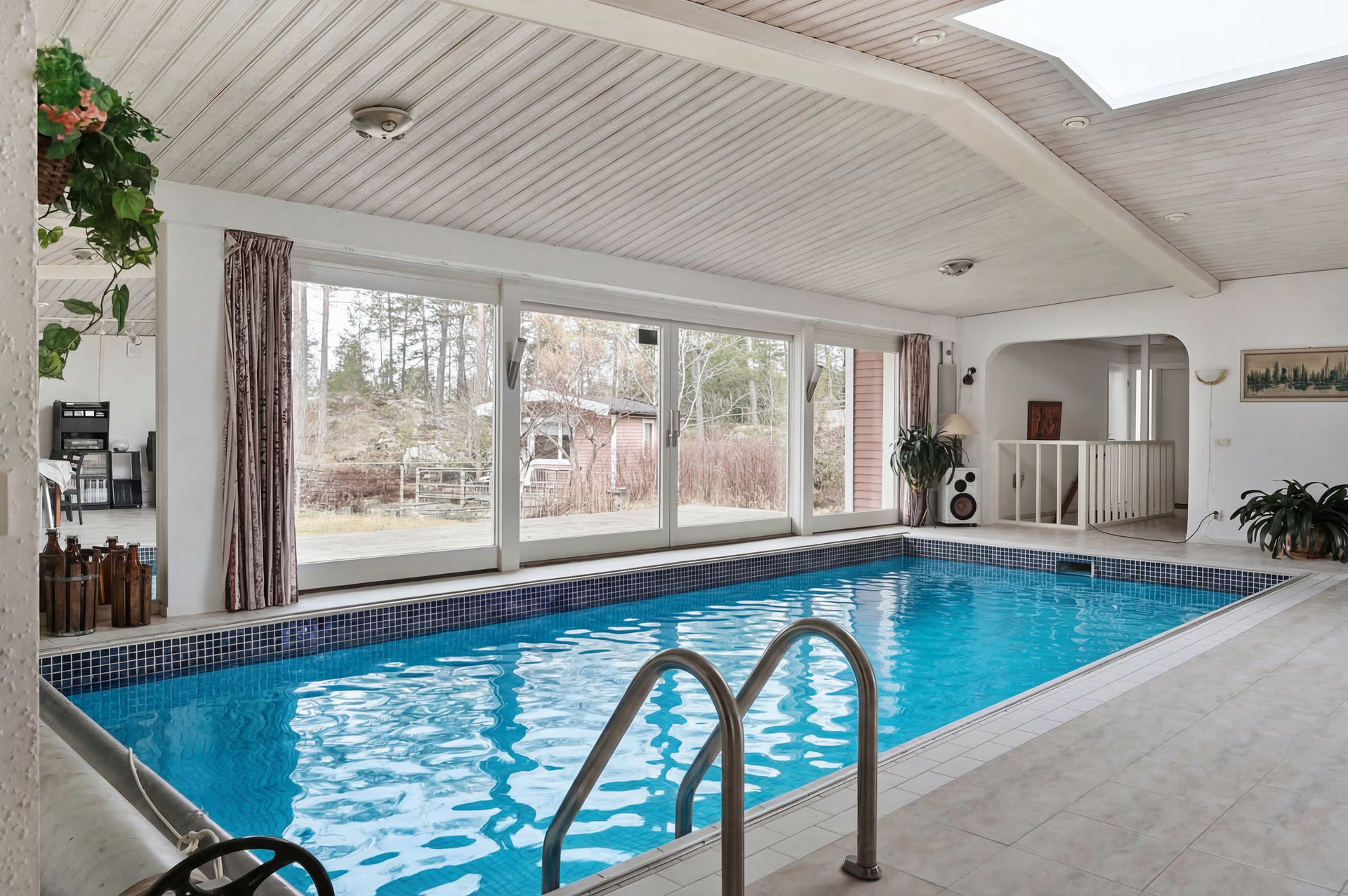 Här erbjuds en ostörd trädgårdstomt i hörnläge med allmänning och hästhage på baksidan. Ett unikt hus där husets mittpunkt är det stora vardagsrummet med generösa sällskapsytor med inomhuspoolen som pricken över i:et. Från vardagsrummet tar man sig via det öppningsbara skjutpartiet ut på altanen på baksidan i ett helt ostört läge. Vidare i huset finns det i dagsläget ett stort kök, fyra rymliga sovrum, två helkaklade badrum varav det ena har en bastu, genomgående goda förvaringsmöjligheter i huset och ytterligare ett sällskapsrum intill köket utöver det stora vardagsrummet med poolen. Från en av entréerna nås källaren som även den har gott om plats, generös takhöjd och ett gömt litet rum som använts som vinkällare. Det här är ett hus med många smarta lösningar som måste upplevas på plats. På tomten finns ett stort garage med kombinerad carport, stora gräsytor och på baksidan en damm där man tidigare haft karpar. Intill dammen finns ett charmigt gästhus med mindre kök och wc. Saltarö och det närliggande Skärmarö är ett paradis för dig som älskar skärgårdens natur och havets närhet. Här finns ett flertal badplatser och båtplatser samt natursköna promenadstråk som gör det enkelt att njuta av omgivningarna året runt. Läget är lika praktiskt som naturnära, med ett härligt lugn men ändå närhet till service och kommunikationer. Detta är ett hem för dig som söker ett liv i harmoni med naturen, utan att ge avkall på modern komfort och stil. Välkommen att uppleva denna unika fastighet, en plats att verkligen kalla hemma. Kontakta ansvarig mäklare för mer information & anmäla ditt intresse!