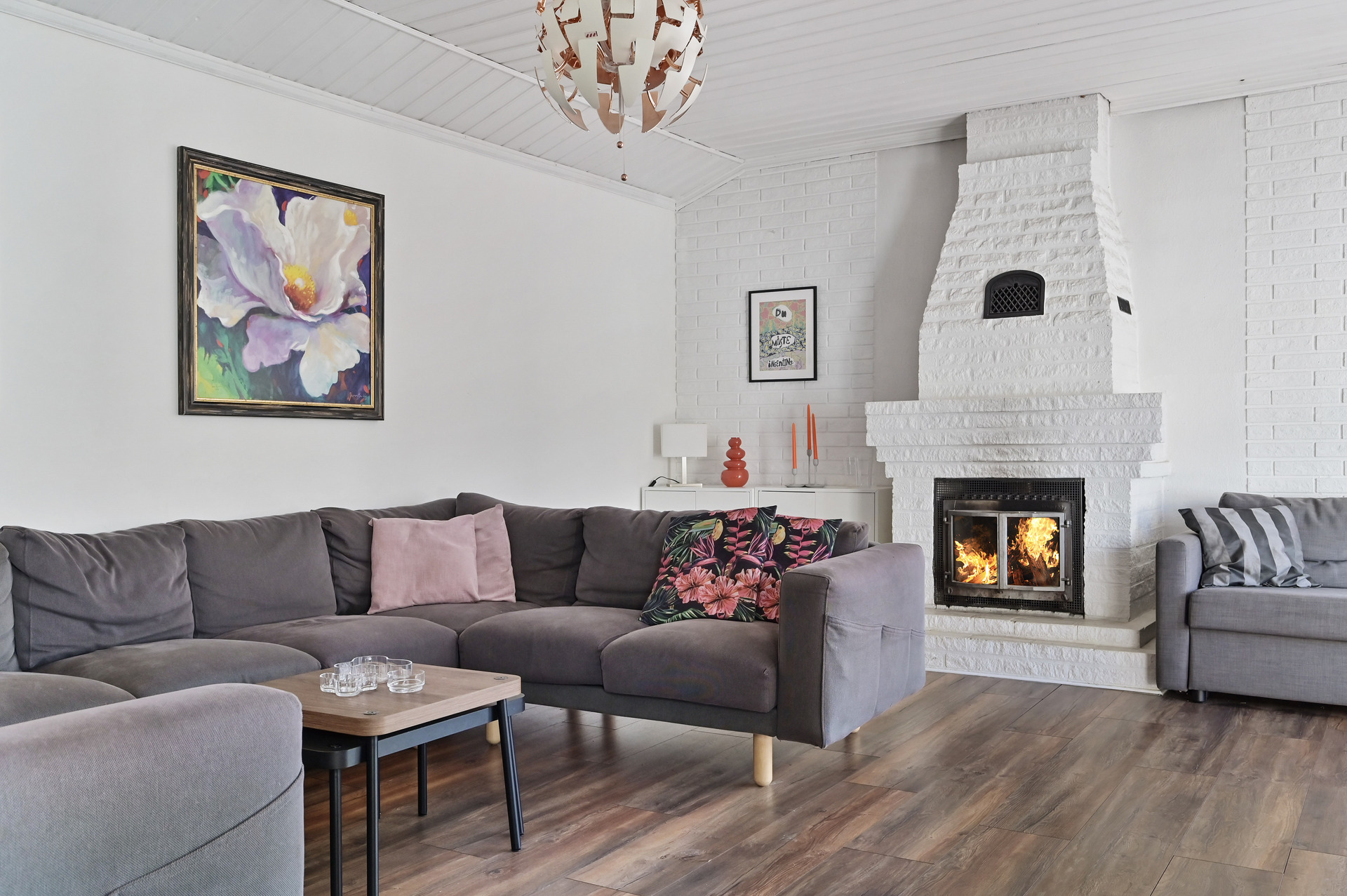 - Uppvärmning: Typ av uppvärmning: Golvvärme + direktverkande el + braskamin.